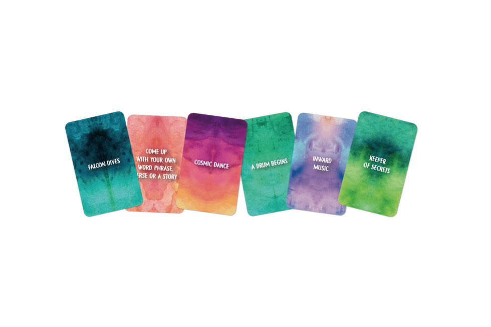 Discover 84 original mystical inkblot arts on big cards and the Title cards. A storyteller chooses a 'Title' card and matches it with one of five image cards on his turn. Other players use this theme to select a card from their hand that matches the Title. All the cards are shuffled and revealed. Now players vote for the image nearest to the Title.